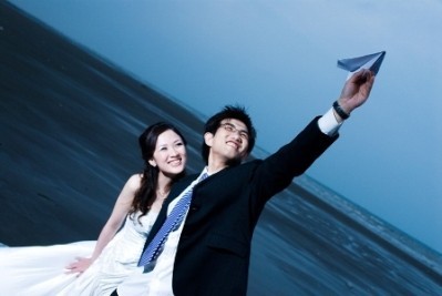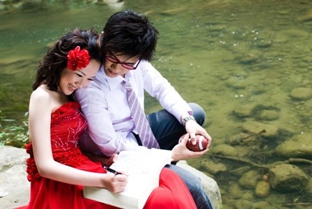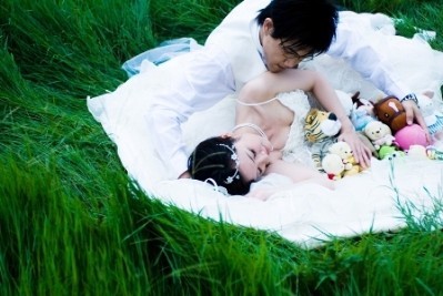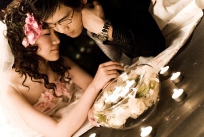 在自己拍婚紗前